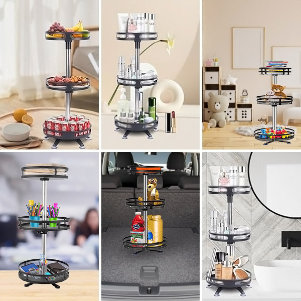 A csomag tartalma: 1 x SPINSTORE 360° forgatható fém tároló szervező