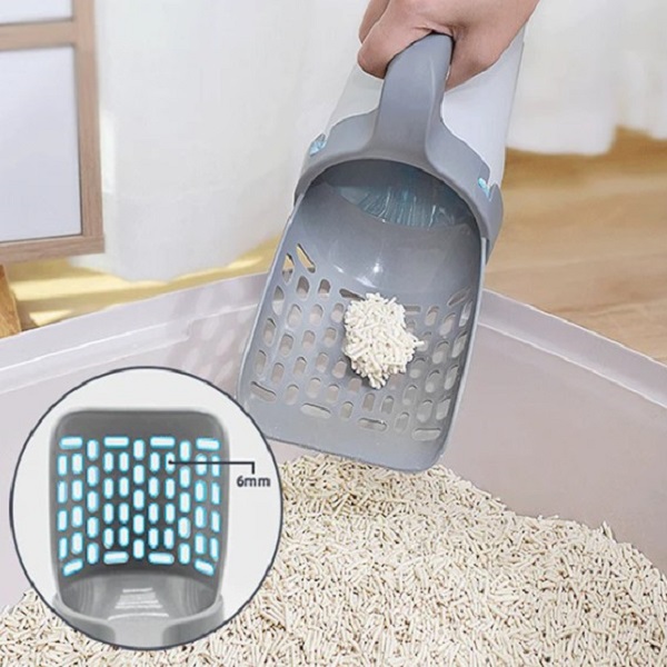 A hozzátartozó zacskóval ellátott macskaalom-tisztító segítségével gyerekjáték a macskaalom takarítása. Ezzel a praktikus eszközzel búcsút inthet a rendetlen macskaalomtálcáknak.