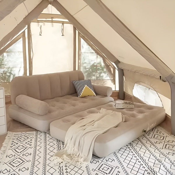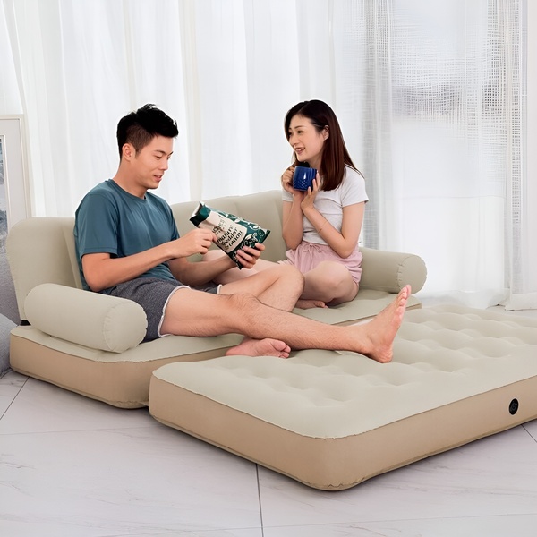 Váratlan vendégek érkeztek? Nem probléma. A SOFLINKA mindössze 3 perc alatt teljes méretű franciaággyá (152 x 188 cm) fújható. Napközben kényelmes kanapévá hajtható olvasáshoz vagy tévénézéshez. Két bútor egyben – helypazarlás nélkül.