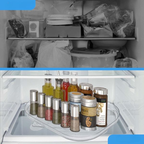 Tartsa rendben a hűtőszekrényét az átlátszó téglalap alakú hűtőszekrénytálcával. Ez a 360°-ban forgó hűtőszekrény szervező tökéletes a könnyű hozzáféréshez és a maximális helykihasználáshoz. Egyszerűen tisztítható, csúszásmentes tapadókorongokkal rendelkezik, és nem igényel telepítést.